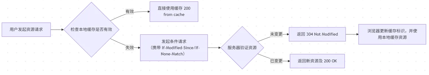 | 协商缓存 | 强缓存过期后,与服务器验证 | 若服务器返回304,浏览器使用本地缓存 | 304 (Not Modified) |